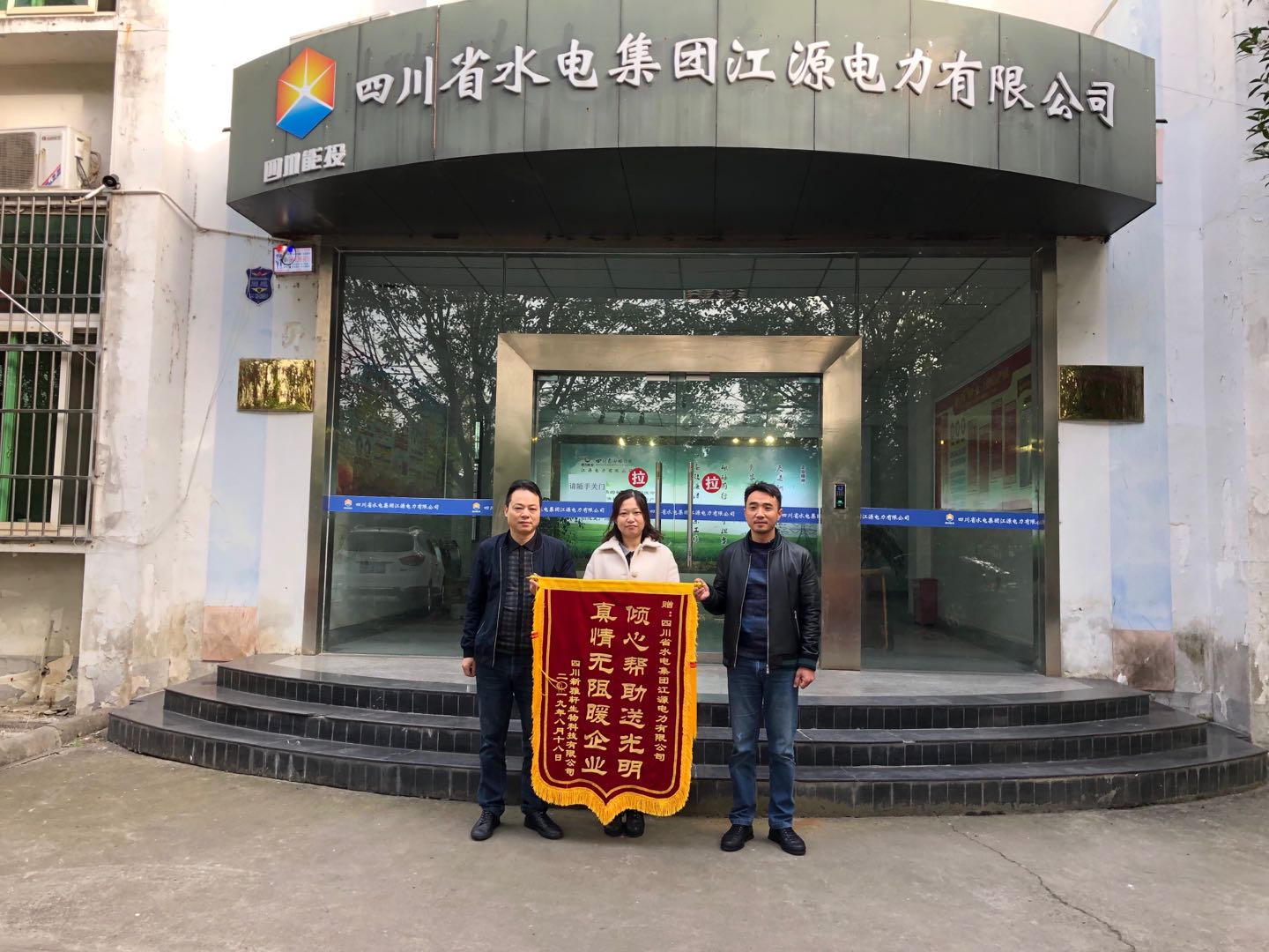 近日,四川蜀來寶食品有限公司、四川新雅軒生物科技有限公司工作人員將兩面分別寫著“熱情精湛細致入微、服務優質耐心周到”和“傾心幫助送光明、真情無限暖企業”的錦旗送到川能水電集團江源公司,對江源公司為企業用戶提供用電保障的優質服務表示感謝!