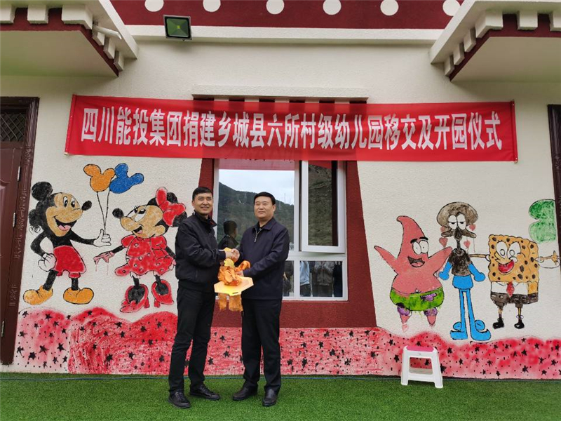 6月4日,鄉(xiāng)城縣在白格村幼兒園舉行了四川能投集團(tuán)捐建6所村級(jí)幼兒園移交及開園儀式。四川能投集團(tuán)工會(huì)副主席、四川能投水電集團(tuán)黨委副書記、工會(huì)主席陳濤與鄉(xiāng)城縣副縣長(zhǎng)格桑央西簽訂移交協(xié)議。