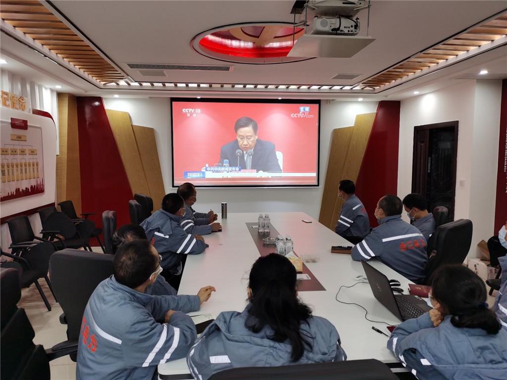 新聞發布會當天,集團公司領導曾勇、劉均劍等在家班子成員、各部門負責人及售電公司部分管理人員在集團本部405多功能廳集中收看,其他黨員和職工通過電視直播、網絡直播觀看實況,大家一邊看一邊記,深入學習領會全會精神。所屬21個公司在做好保電供電、當前重點工作和疫情防控的同時,組織黨員和職工現場集中觀看或通過網絡、手機客戶端在線觀看,第一時間學習領會全會精神。